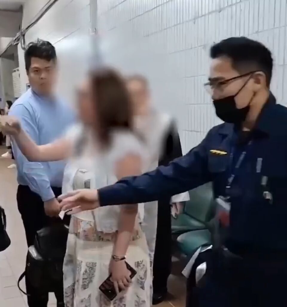 在台中地院法庭外,對台中律師公會理事長吳中和呼巴掌的林姓女子被檢方傳訊到案聲押。翻攝畫面
