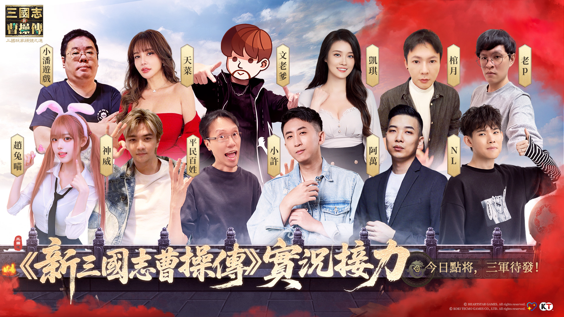 經典福利還靠各位主公們賞臉,與實況主們共同進行遊戲,領取主播們的不同專屬虛寶,將會讓主公們獲得更大的遊戲助益!