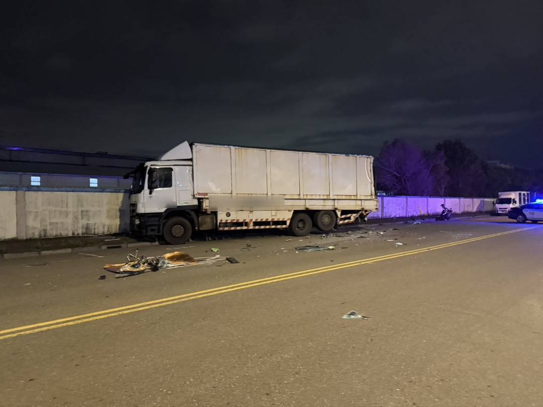 遭撞擊大貨車。翻攝畫面