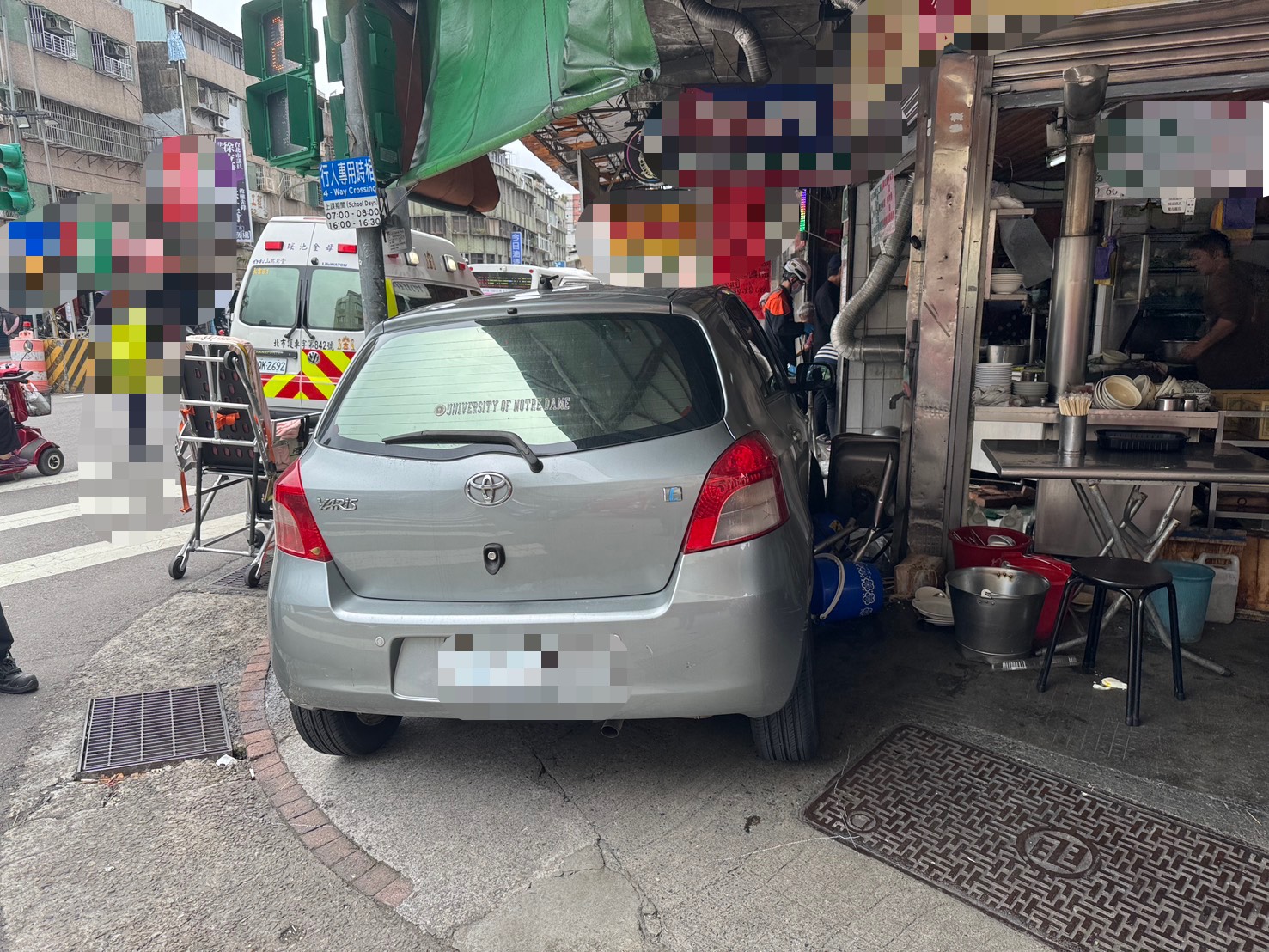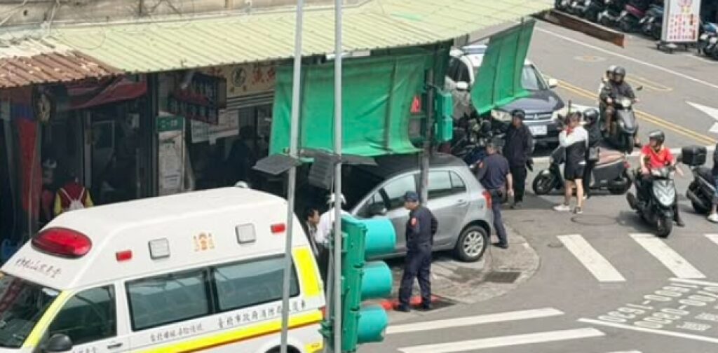 台北市信義區自小客車衝入麵店,警消人員到場處理。翻攝畫面