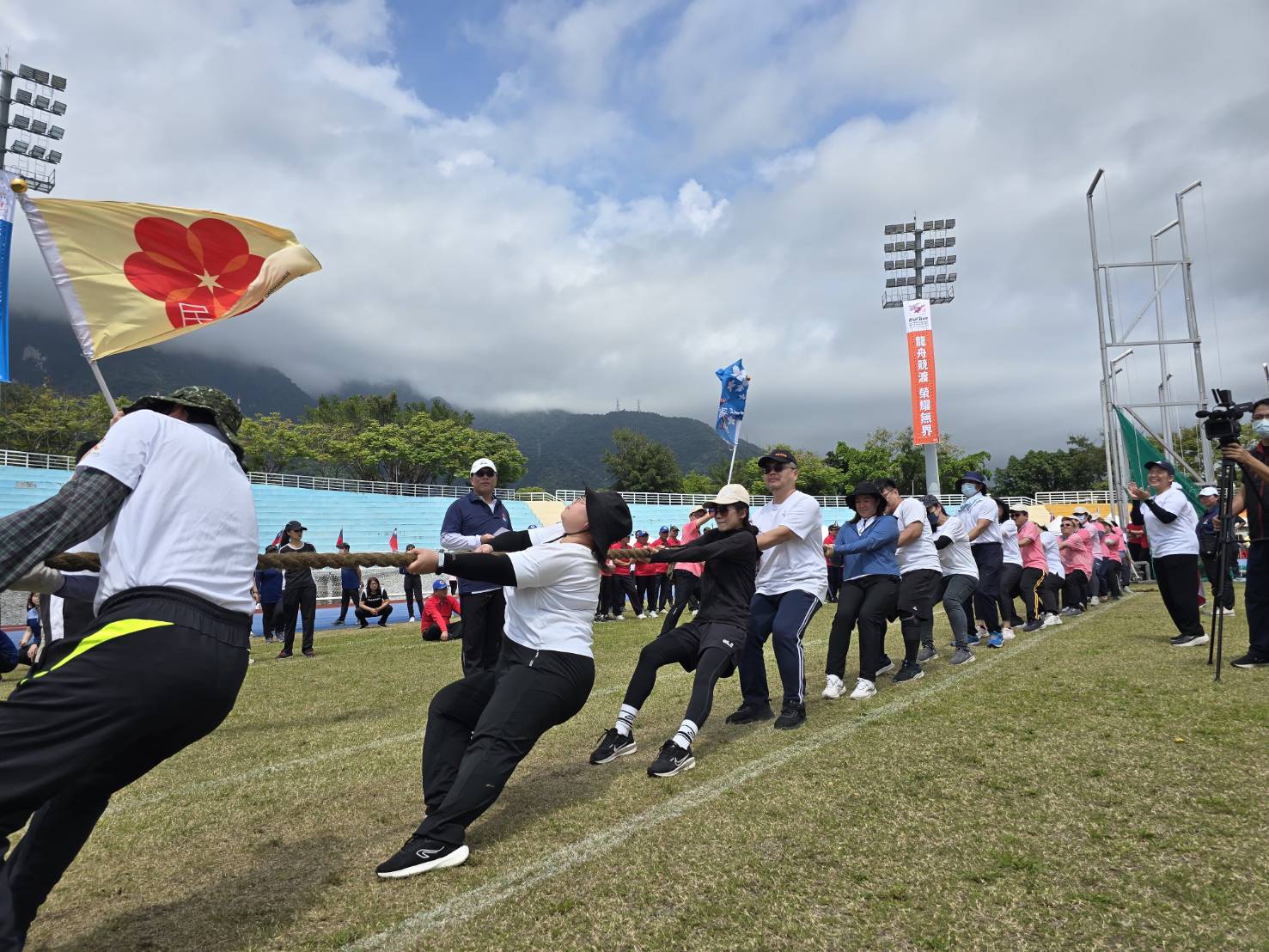 此次運動會創意進場呼應運動會主題,各參賽隊伍精心準備進場造型與口號,展現各機關特色與團隊精神。競賽項目分甲、乙、丙、丁四組進行,包括傳統拔河、大隊接力、團結合作勇爭先、心手相連克難關及招財納福迎彩球等趣味與競技兼具的項目,現場氣氛熱絡,歡笑聲、加油聲,此起彼落。