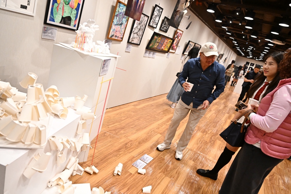 此次展覽延續跨校區聯展形式,集結秀岡、青山與新竹校區作品,其中青山校區展出6件、新竹校區展出5件於全國學生美術比賽中獲獎的作品。青山校區教務處主任陳宥璇表示,不同年齡層作品同場展出,有助學生理解能創作隨學習經驗逐步發展的過程。