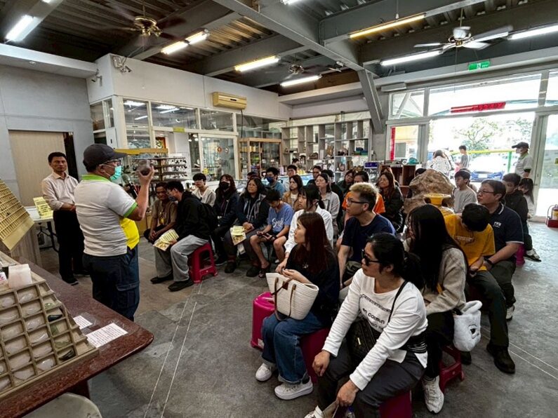 ▲工藝師鍾翔和(左二)深入介紹玉石的種類與形成背景。