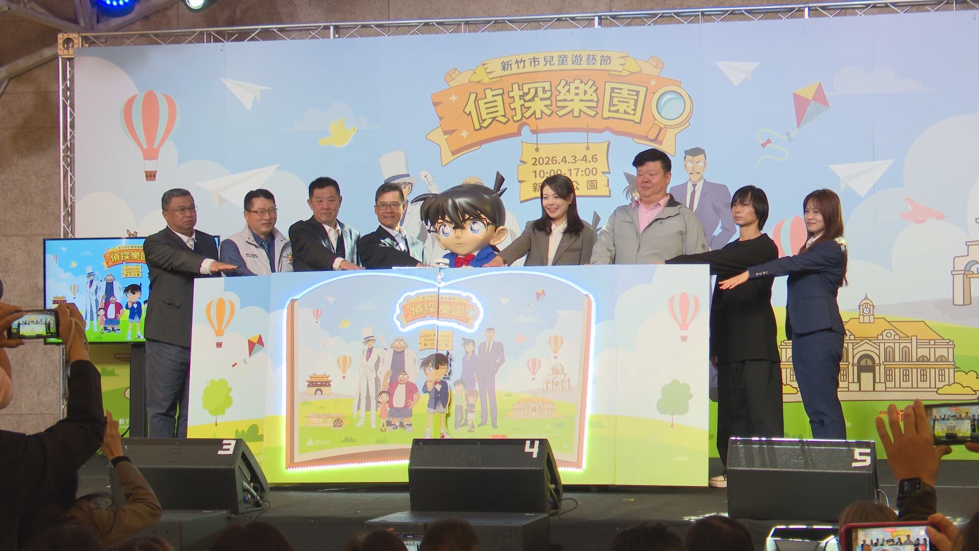 精彩熱鬧的開場演出,吸引眾人目光,馬上炒熱現場氣氛,不只如此,今年新竹市也特別請來國際知名IP名偵探柯南,果然記者會上,名偵探柯南一出場就讓全場瘋狂。