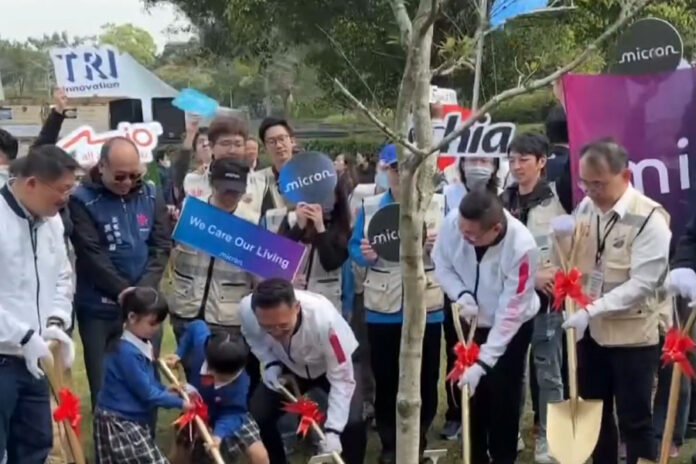 鏟子鏟土覆蓋在台灣原生樹根上,「森植未來.溪望永續」植樹節活動揭開序幕,由龜山區公所與華亞科技園區服務中心共同舉辦的植樹節活動在華亞園區內公園盛大展開,現場有園區內17家企業共襄盛舉,要用行動來展現企業社會責任,推動城市綠化與生態永續。