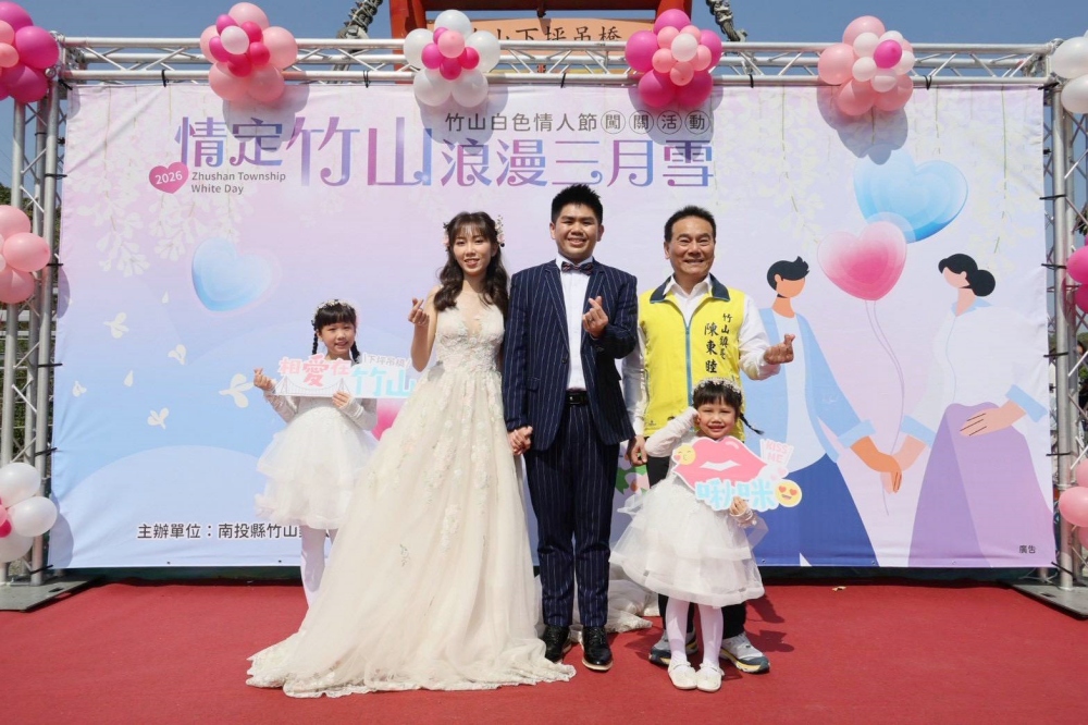 一年一度的白色情人節活動「2026情定竹山─浪漫三月雪」3/14日上午於南投竹山下坪吊橋浪漫登場,吸引全國150組夫妻、情侶及親友熱情參與,共度一場充滿愛與祝福的春日盛會。