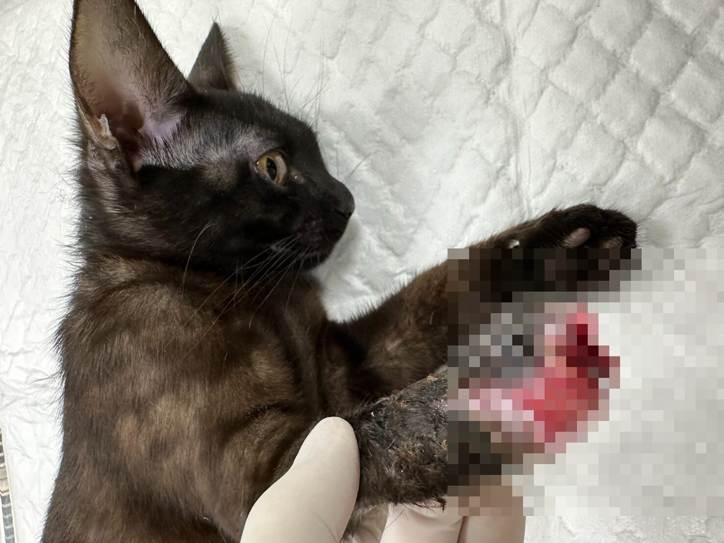 ▲誤觸獸鋏的貓,掌骨遭完全夾斷。(圖/新北市動保處 提供)