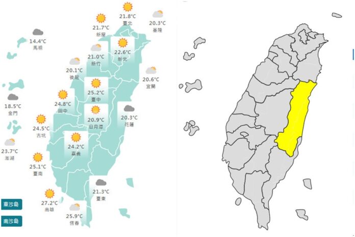 氣象署今天清晨發出大雨特報,因東北季風影響,花蓮地區有局部大雨發生的機率,請注意。
