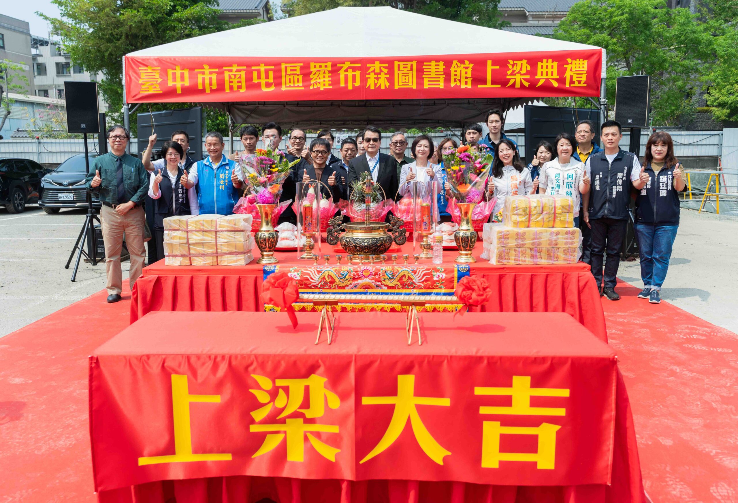 ▲羅布森圖書館上梁大合照。(圖/台中市政府提供)