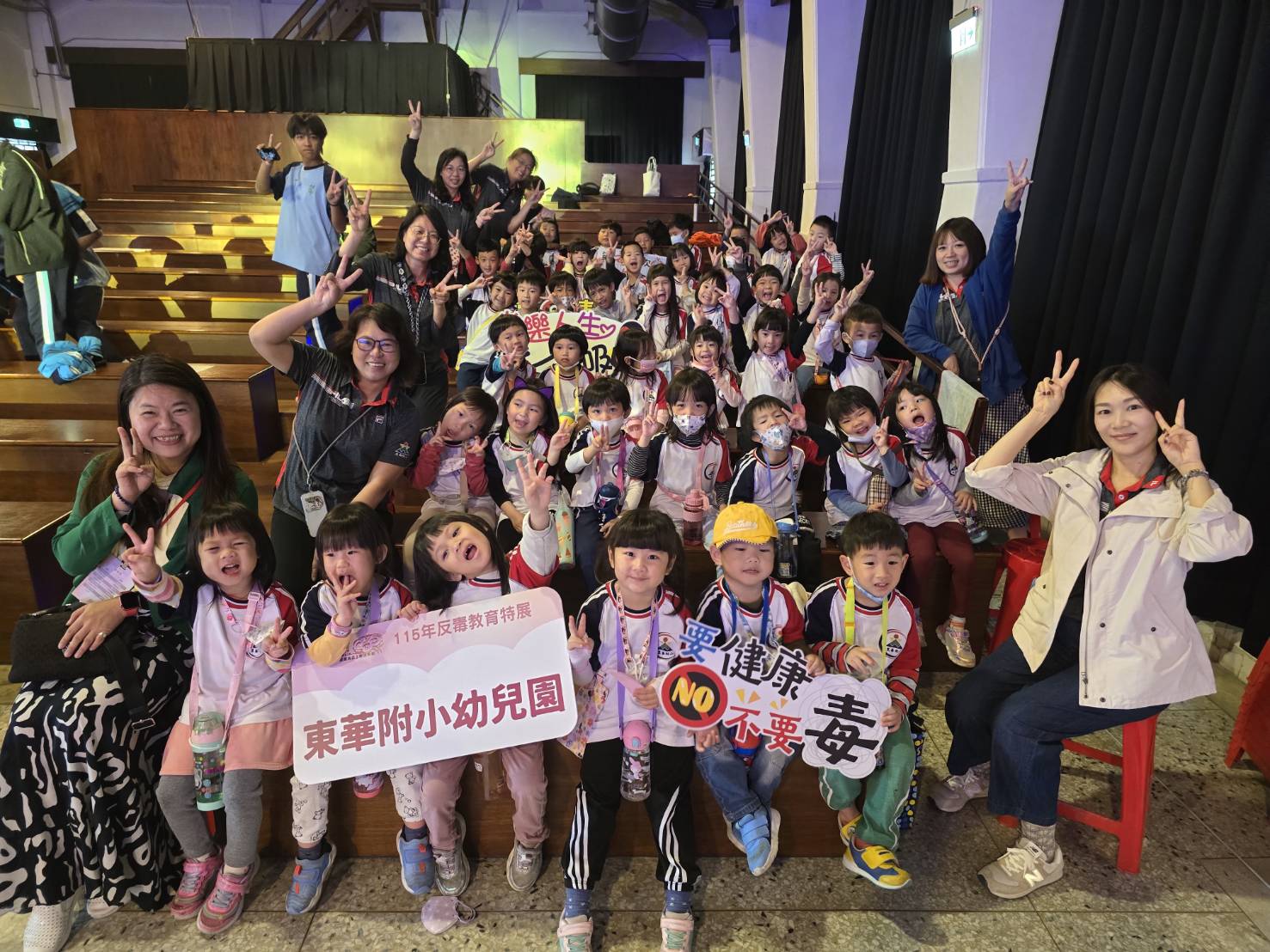 東華附小校長張慧娟說,青少年因好奇、無聊、趕流行而施用新興毒品,有越來越年輕化的趨勢,沒有戒治而成癮,將對社會帶來嚴重危害,因而學校從幼兒園開始,就讓小朋友了解什麼是毒品?如何遠離防範?