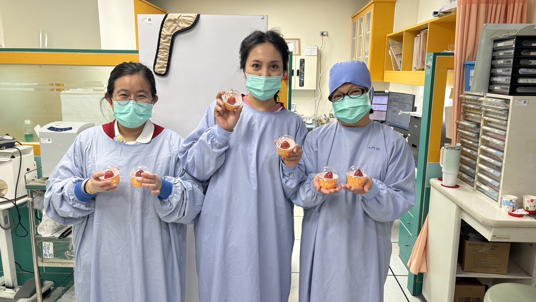 ▲醫護人員收到「莓滿大福」,相當高興。