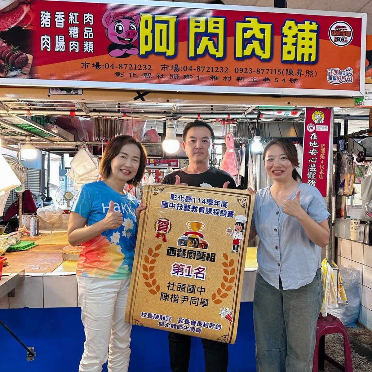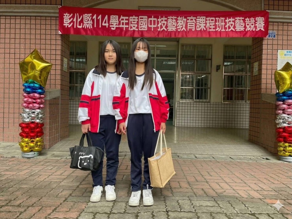 在彰化縣國中技藝競賽中,社頭國中學生陳楷尹、洪宷瑩參加西餐廚藝組競賽,分別榮獲第一名及第三名佳績,並取得技優甄選入學資格,為升學之路提前開啟更多可能。其中,榮獲第一名的陳楷尹同學,因父母於傳統市場經營肉品生意,自幼耳濡目染,對食材特性及食品製備累積了深厚基礎。此次她選擇西餐廚藝中的蛋糕製作項目應賽,展現出細膩手法與穩健實力,獲得評審肯定。