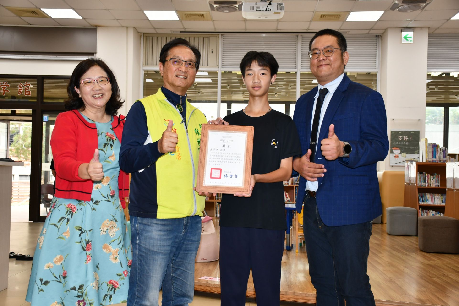 圖說:林世賢市長頒感謝狀表揚彰藝中國中部畢業班學生
