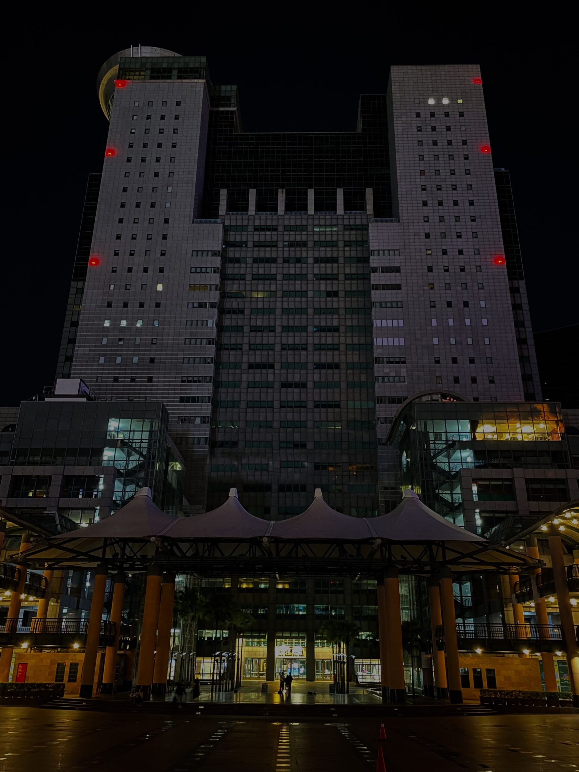 ▲新北市政府第一行政大樓及市民廣場配合關燈活動(2025年活動照)。(圖/新北市環保局 提供)
