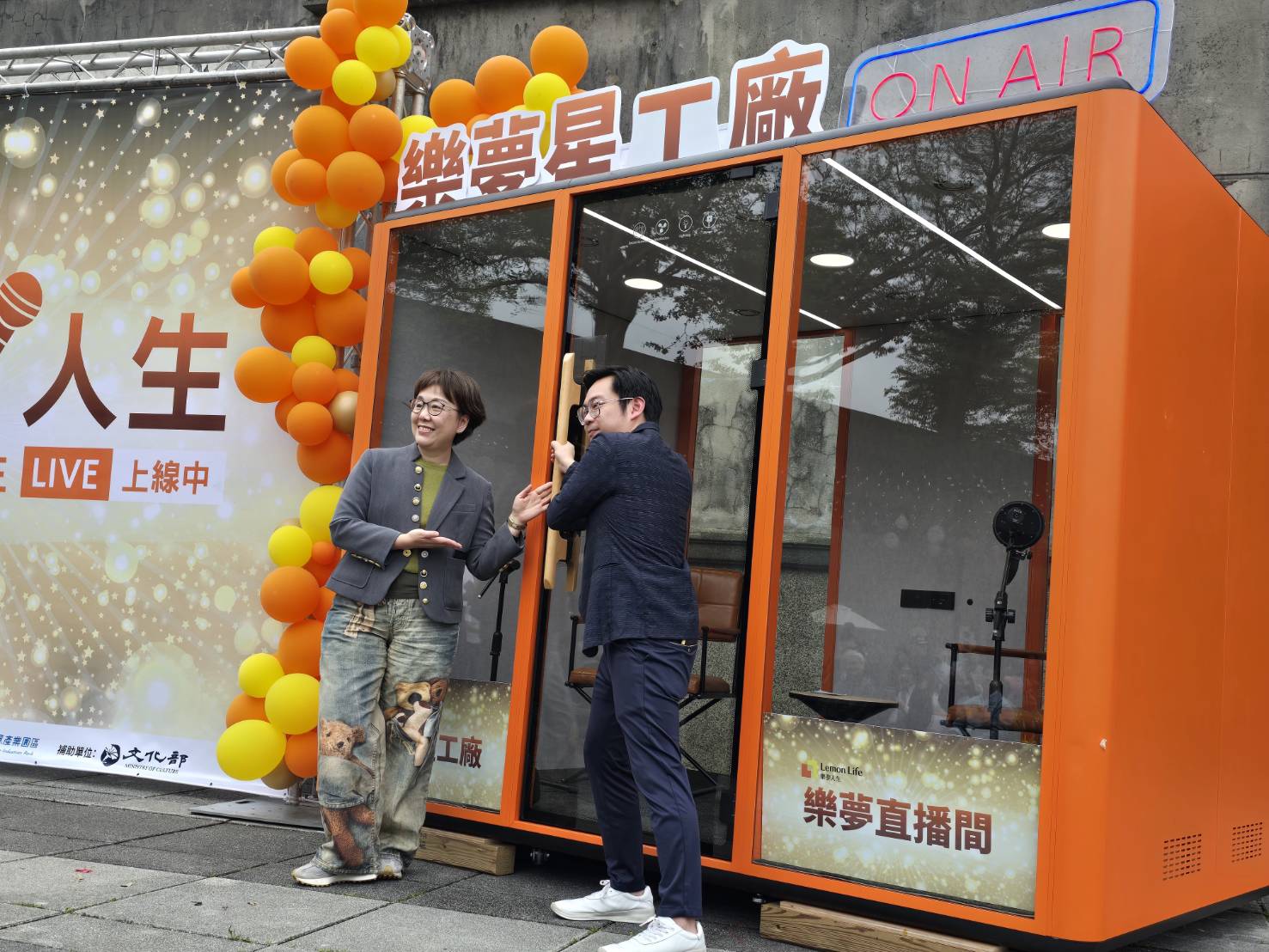 ▲「樂夢星工廠」由文化部政務次長王時思(左)、樂夢星工廠執行長邱雅達(右)啟動。(圖/范振和攝,下同)
