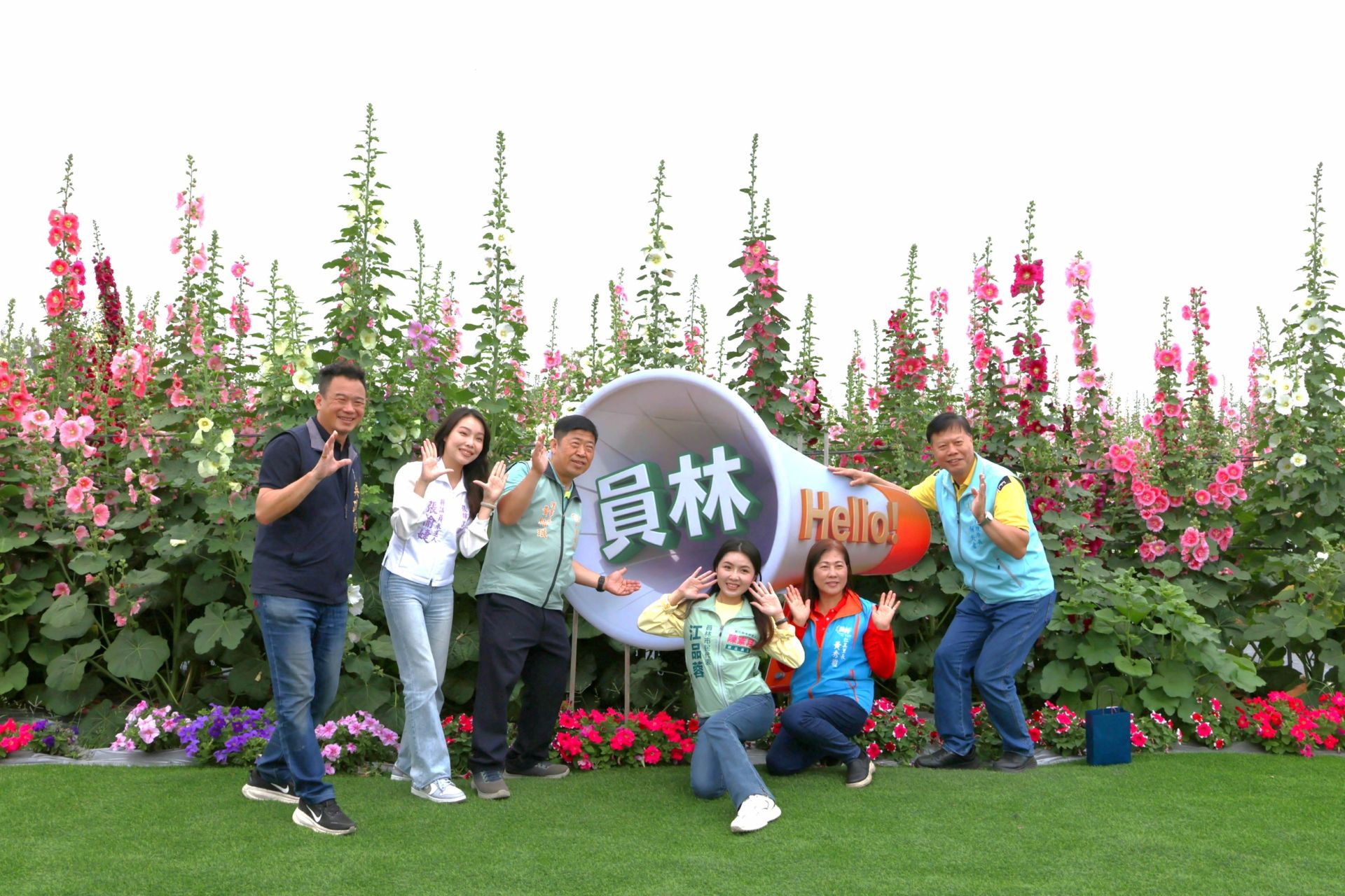 圖說:賴致富和來賓們邀請大家清明連假來員林欣賞美麗的蜀葵花