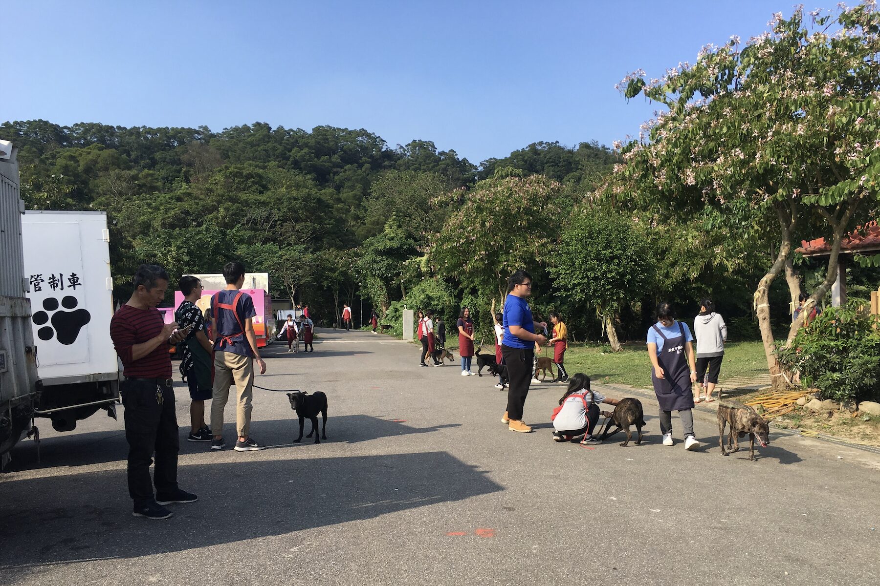 ▲在志工隊長黃新的帶領下,青年志工們積極投入動物照護工作,陪伴犬散步、互動,讓毛寶貝受到溫暖與關懷。(圖/新北市動保處 提供)