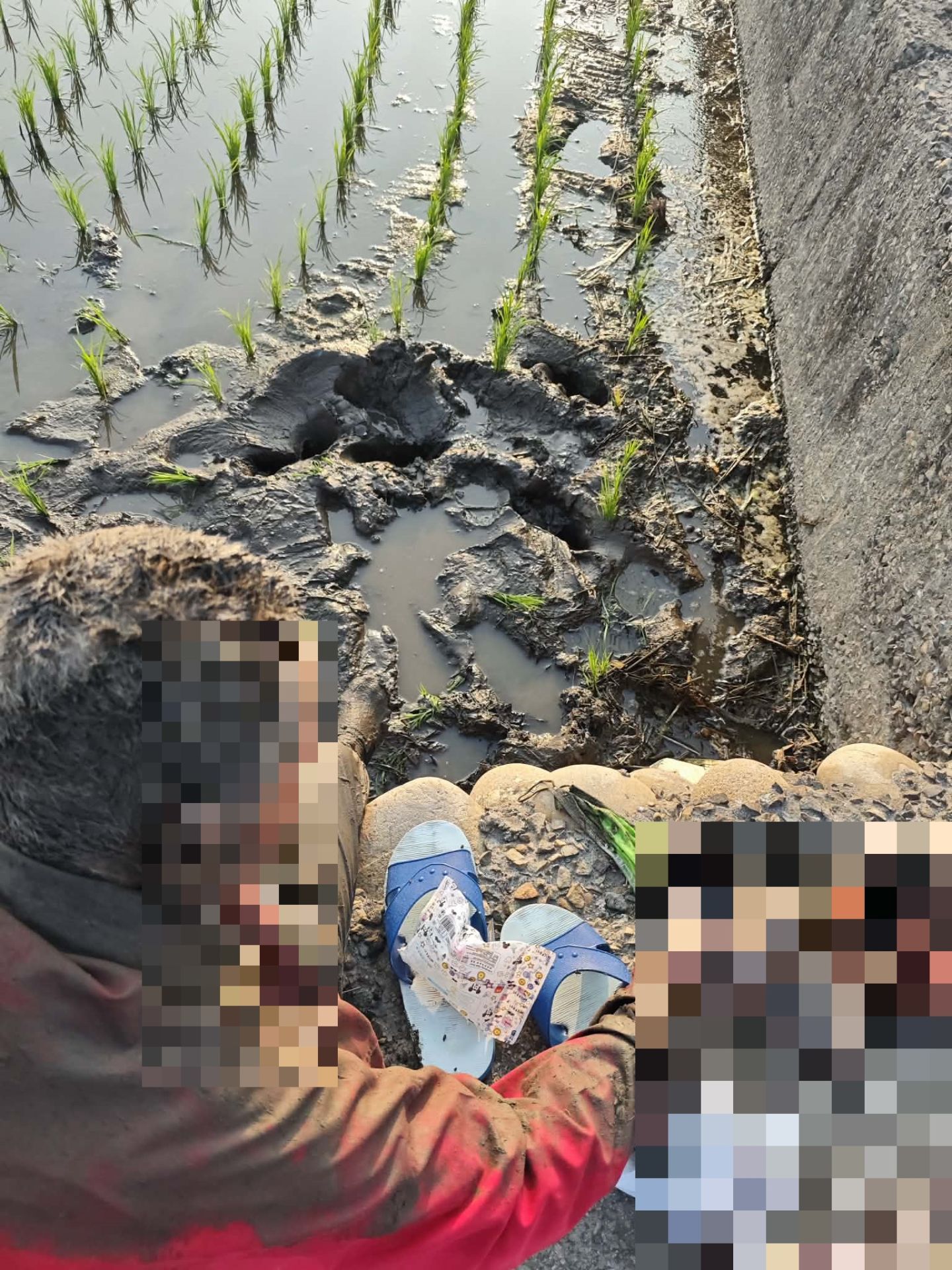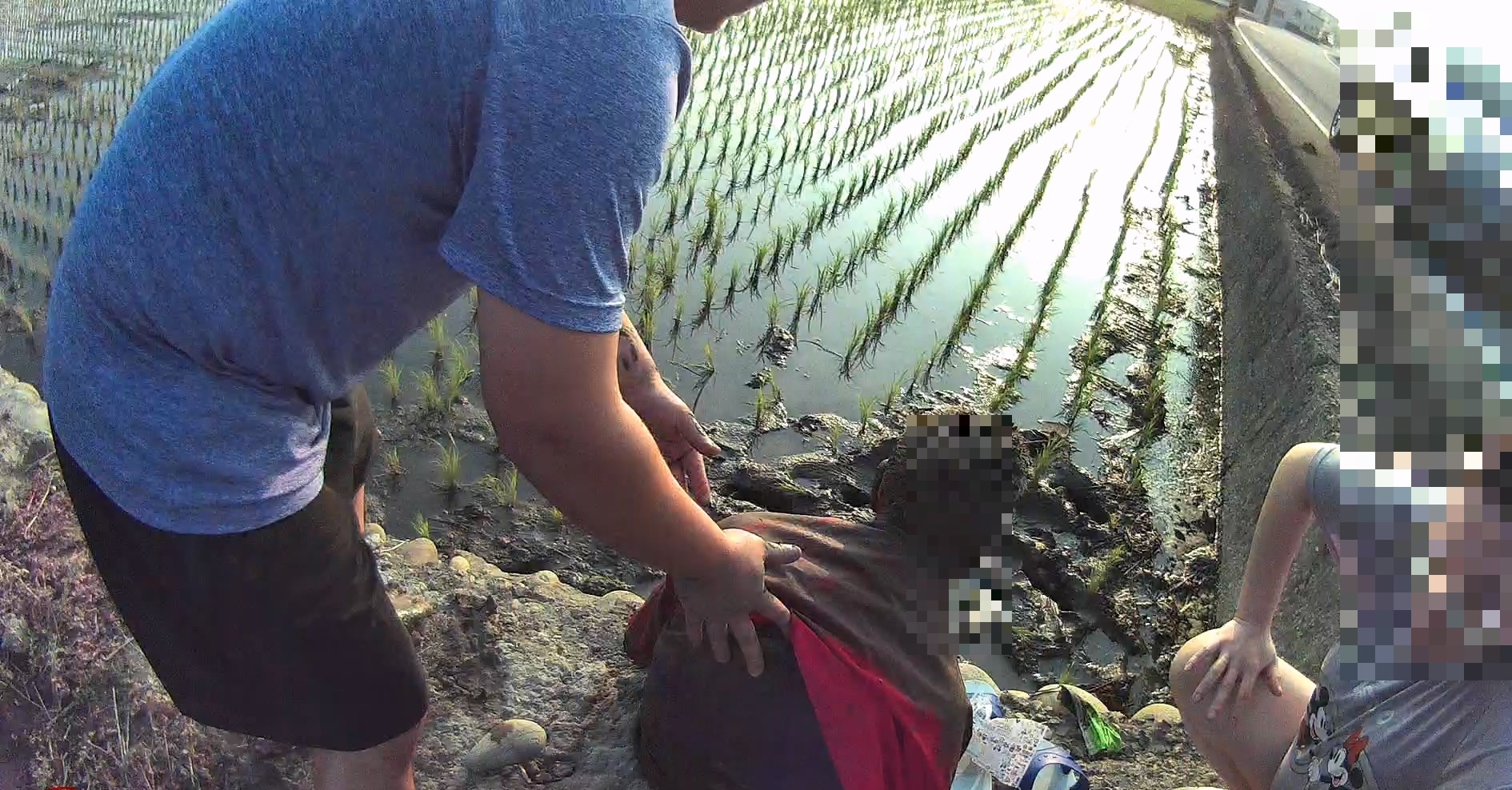9旬老翁跌落農田臉朝下吸入泥水。翻攝畫面