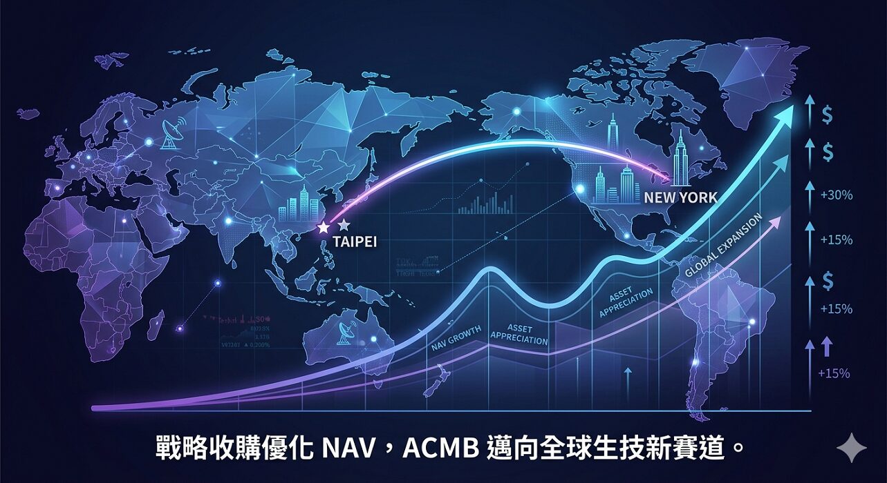 ACMB董事會核准收購雙牛集團持有的四項植物藥專利,四大專利亮點包括: 一、薑黃素奈米萃取技術,可提升生物利用率。二、仙人掌多醣調節劑,已完成 FDA Phase I 臨床試驗。三、銀杏葉保護複合物,針對相關應用。四、植物平台廣譜應用,獲歐洲監管初步認證。
