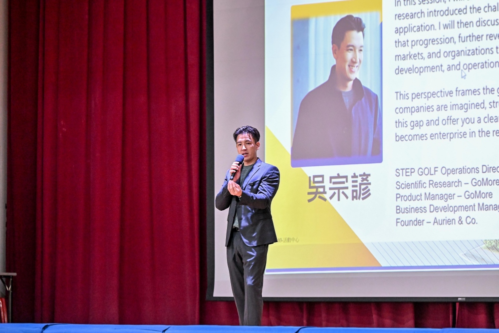 ▲TEP GOLF營運總監、康橋校友吳宗諺於職涯探索日分享從運動員轉入企業管理的歷程,指出在學期間培養的思考與學習能力對後續發展具關鍵影響。(圖/康橋國際學校提供)