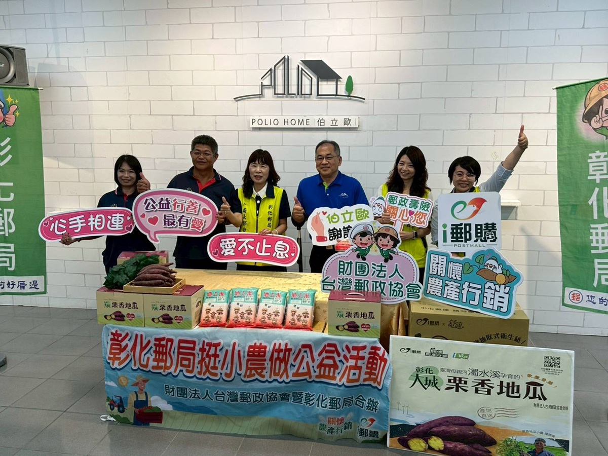 彰化郵局持續照顧農民支持關懷農特產品,於3月31日上午假「社團法人彰化縣喜樂小兒麻痺關懷協會」舉行年度關懷農產行銷-大城地瓜公益捐贈儀式,以實際行動關懷弱勢族群並傳遞社會溫暖。