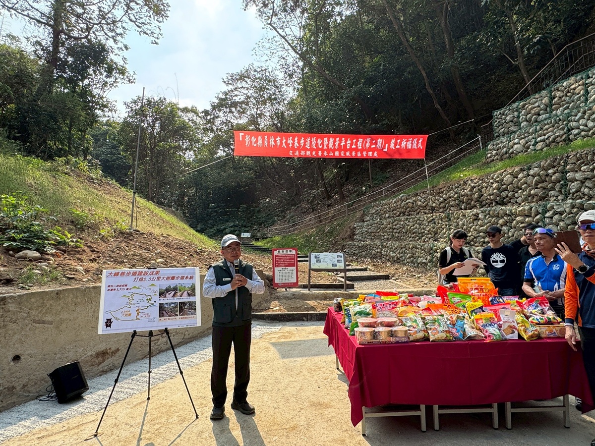 交通部觀光署參山國家風景區管理處持續提升八卦山旅遊觀光資源,繼「彰化縣員林市大峰巷步道優化暨觀景平台工程」第一期工程於113年完工啟用後,第二期工程於今(31)日順利舉行完工祈福儀式並圓滿落幕。