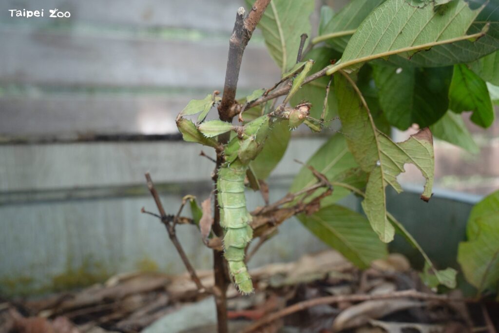 竹節蟲的外觀很多像樹枝或樹葉一樣,會利用偽裝來躲過天敵的眼睛。然而竹節蟲可不只有像樹枝般體型的種類,在臺北市立動物園昆蟲館大網室裡展示的「幽靈竹節蟲」身材就很粗壯,腹部長滿細刺,足部則寬扁形似小葉,當牠們棲息在樹叢間時,會高舉腹部把身體彎成U字形,看起來就像片捲曲的枯葉,微微擺動身體模擬風吹動枝葉的模樣,偽裝功夫一流!