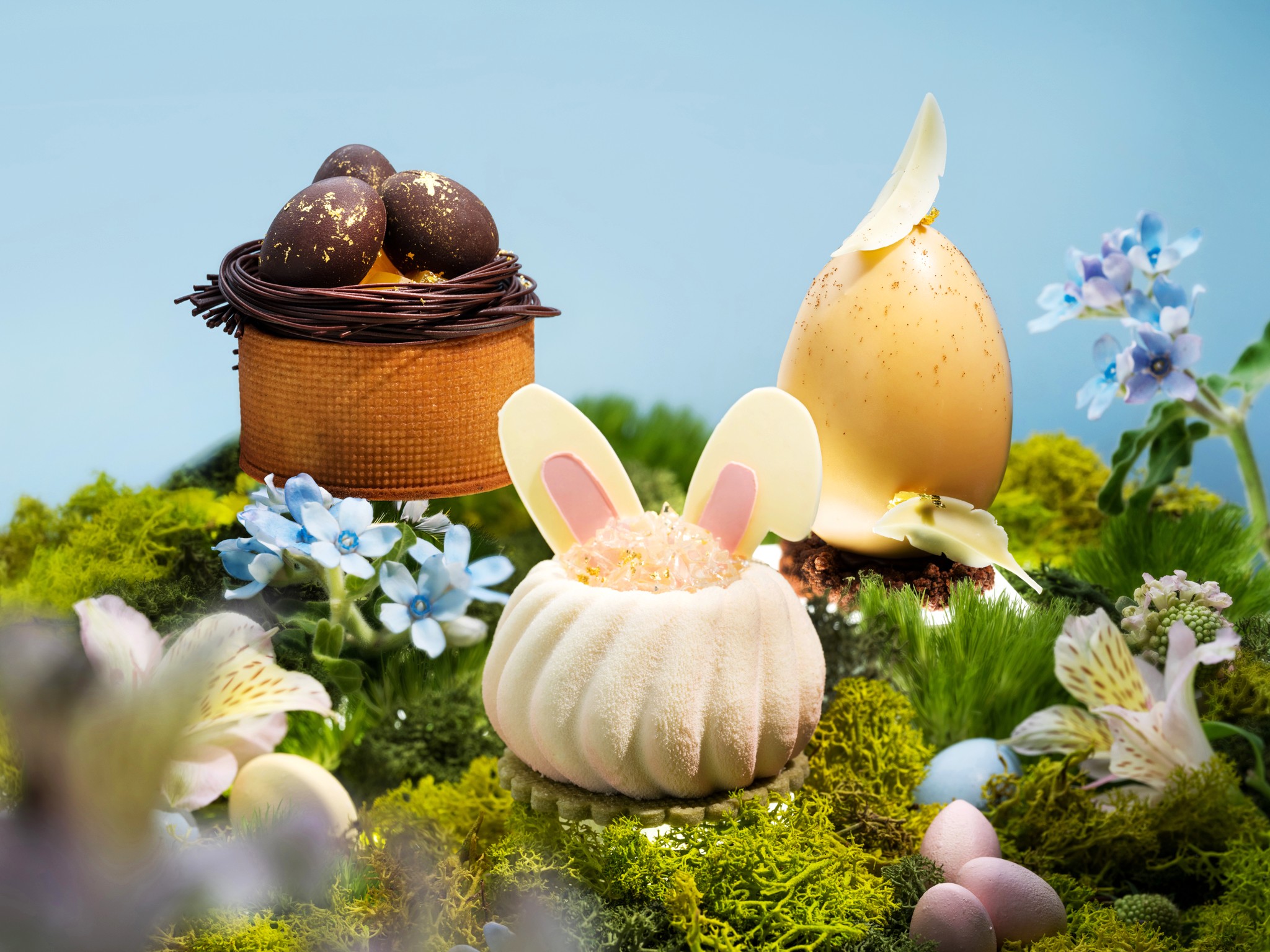台北文華東方酒店文華餅房行政西點主廚胡利雲取材兔子及雞蛋等復活節經典元素,打造一系列繽紛吸睛的各式復活節甜點