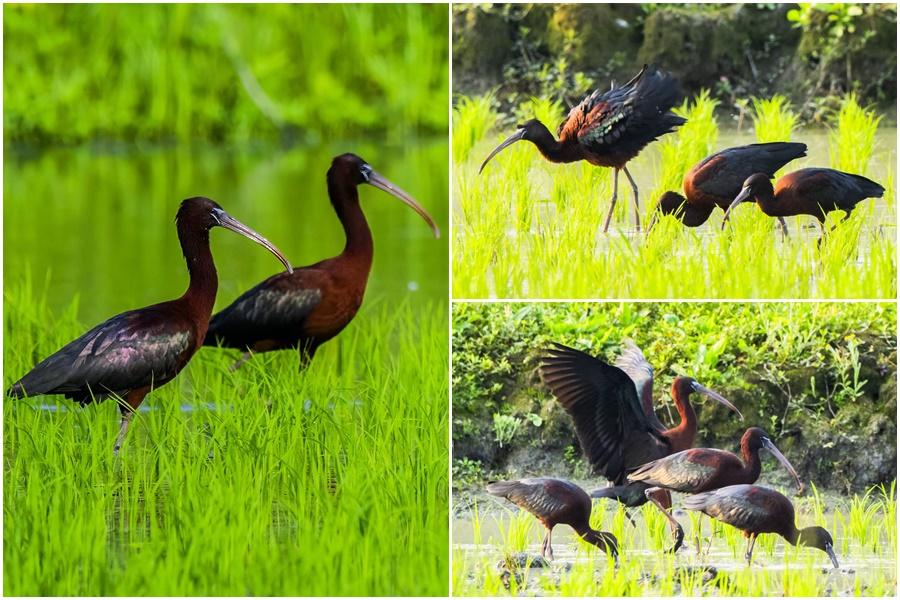 長而下彎的尖嘴、帶著金屬亮光的紅褐色外表,這是彩䴉最大的特徵,5年前曾經在宜蘭被發現後就未再飛臨,直到日前相繼在礁溪及五結鄉的水田濕地現蹤覓食,兩個地方共有15隻之多,但在五結五十二甲濕地的12隻沒多久全都不見了,令鳥友好不失望。