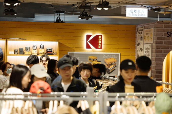 此次於新光三越信義新天地A11開幕的台北首間門市,也延續品牌以影像為核心的空間設計概念。整體空間以底片意象與品牌經典色彩為靈感,從視覺陳列到拍照場景都融入攝影元素,打造宛如走進街頭攝影棚般的沉浸式氛圍。消費者在逛店的同時,不僅能近距離感受KODAK Apparel 潮流單品,也能在店內的影像風格場景中拍下屬於自己的街頭瞬間,讓門市不只是購物空間,更是一個可以「捕捉風格」的潮流據點。