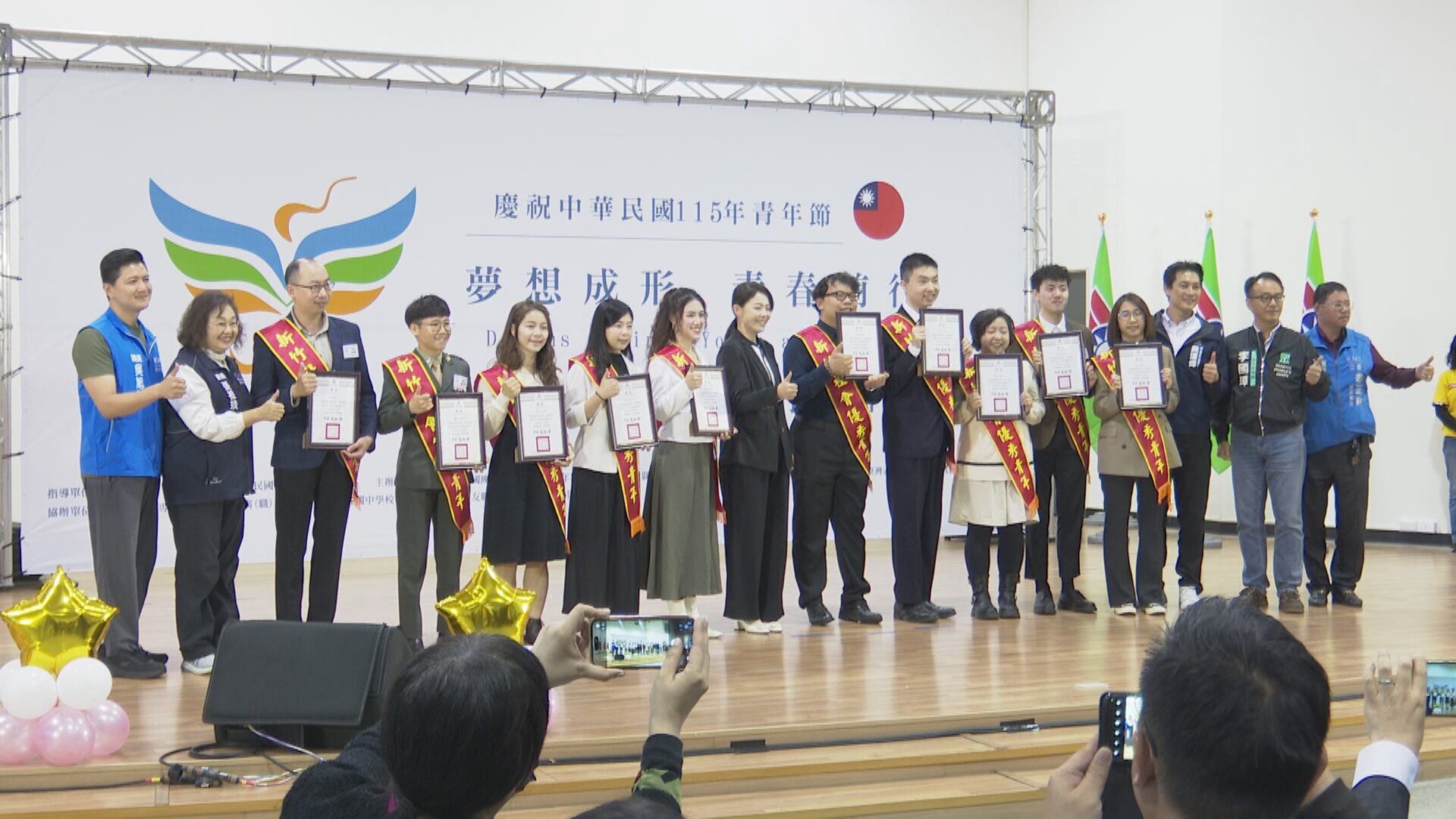 救國團舉辦「夢想成形 青春前行」新竹市優秀青年表揚大會,由新竹市長高虹安親自頒獎表揚62位優秀青年,期待青年朋友們能將專業知識與實踐經驗相結合,在各自的領域持續深耕,並轉化為推動社會進步的動力。