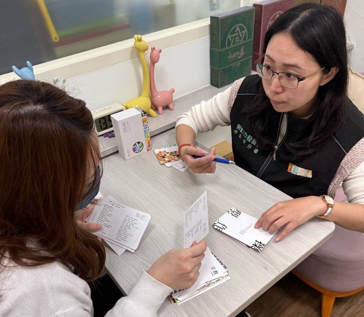 就業服務人員透過臨櫃諮詢與深度職涯晤談,運用職涯牌卡、心理測評及經驗盤點工具,引導她系統性回顧過往歷程,重新檢視個人特質及價值觀,並分析在人際互動上的優勢與待加強之處。過程中發現,小銚並非無法承受工作壓力,而是在溝通策略與情緒調適上缺乏方法。當重新認識自身特質後,她逐漸看見自己具備細心、責任感強、抗壓性高等優勢,反而適合高度專業、節奏緊湊的醫療場域。