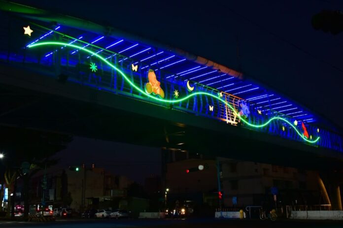 市府表示,透過線性光帶、造型燈箱與意象圖案的結合,橋梁與空橋在夜間形成具有辨識度的光環境景觀,騎士穿越節點時可感受到流動的光影氛圍,打造具有記憶點的騎乘體驗,未來將持續優化自行車騎乘環境與景觀節點,打造兼具安全、休閒與觀光特色的自行車路網,讓民眾在自行車道享受健康、友善且富有城市魅力的騎乘體驗。
