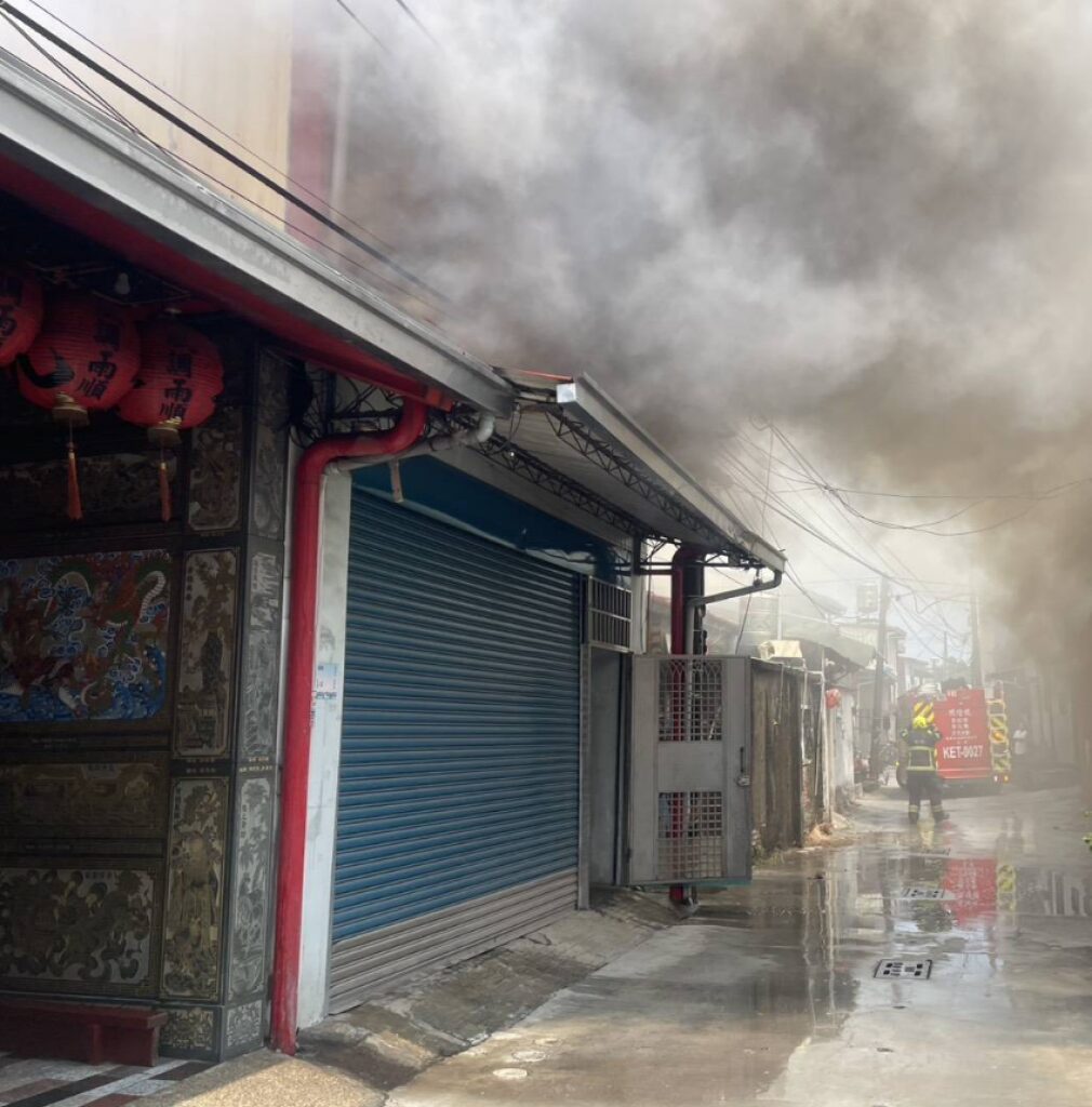 屏東鐵皮倉庫火警濃煙沖天。翻攝畫面