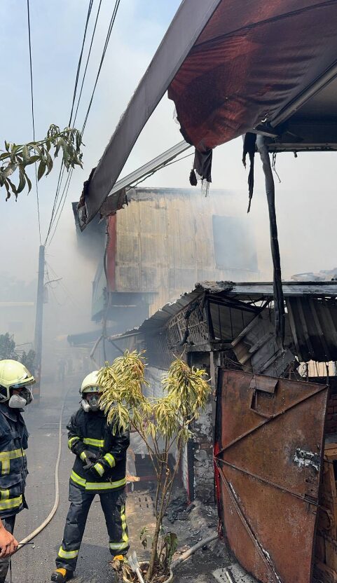 【Lai傳媒、記者爆料網/周庭慶/屏東報導】屏東市光復路竹圍巷一棟2層鐵皮屋倉庫今(3)日上午發生火警,現場火勢猛烈濃煙沖天,消防隊灌救1個多小時撲滅火勢,未波及後方樹林及鄰近住宅,這起火警未造成人員傷亡,但有兩名男子送醫檢查。