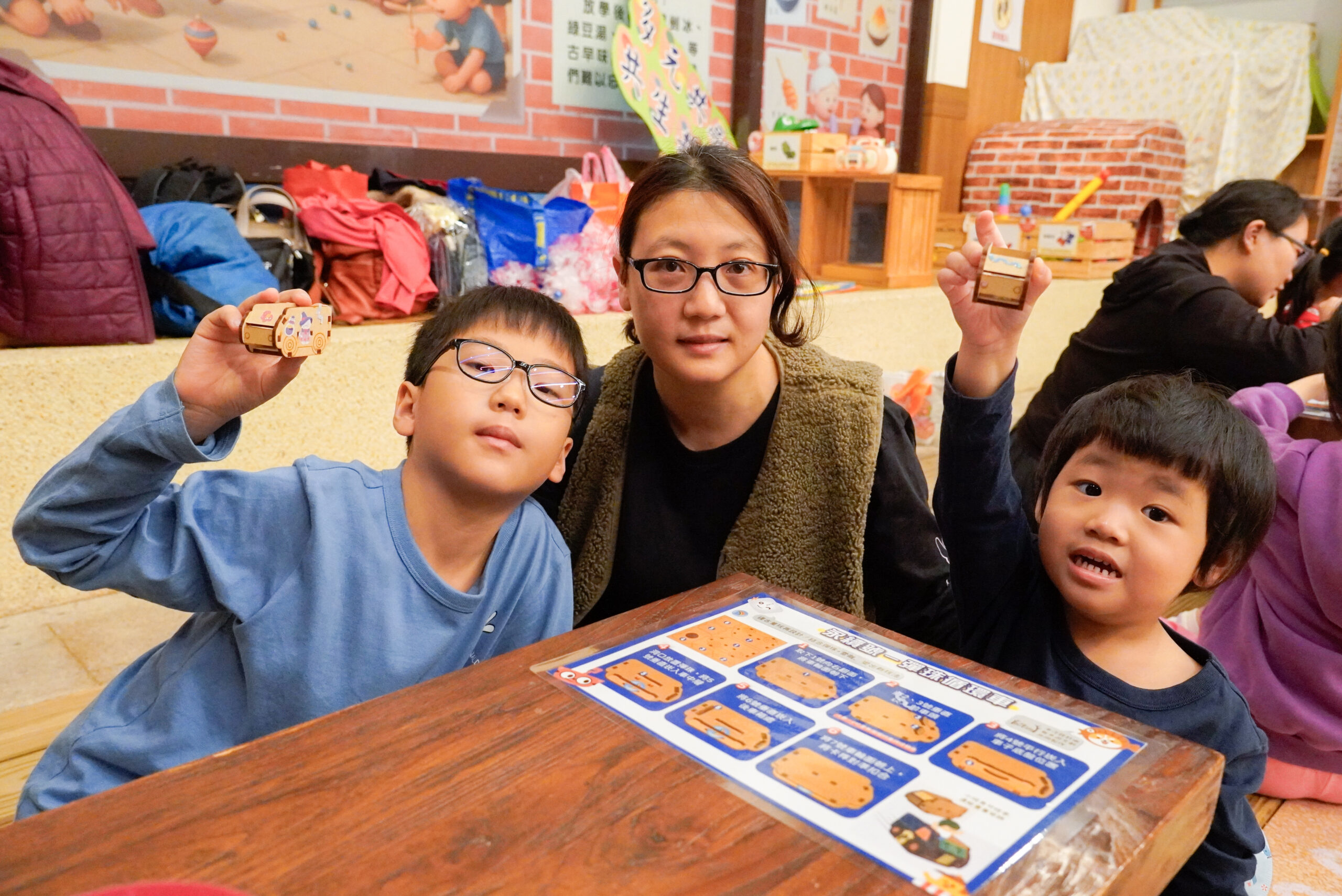 活動現場設計了多層互動關卡,如透過結合古早童玩的尪仔標遊戲,帶孩子思考家務分工,建立性別平等觀念;「誰需要優先席」則是提倡社會包容,請孩子選擇將哪些人偶放上樂高積木的電車椅子。「循環彈珠車」DIY,則讓孩子彩繪與組裝,蘊含珍惜資源的精神。