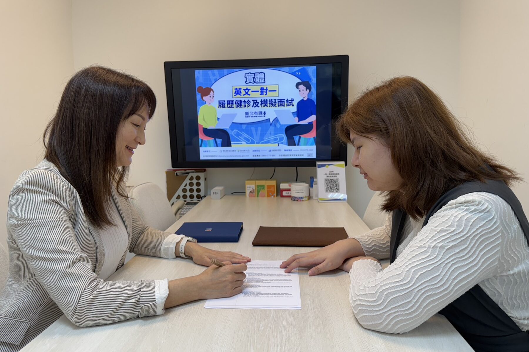 ▲新北市青年局自即日起每週三提供免費「一對一英文履歷健診及模擬面試諮詢服務」,歡迎想挑戰外商企業的青年朋友上網報名。(圖/新北市青年局 提供)