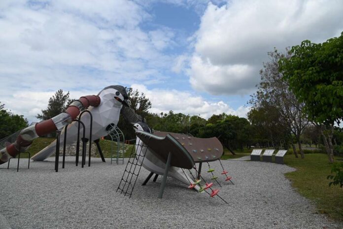 臺東縣政府表示,臺東森林公園為臺東縣最具代表的城市自然地標之一,擁有廣闊森林綠地與濕地生態環境,近年縣府推動「森林公園2.0」景觀升級計畫,在維護自然生態前提下,透過地景設計與公共空間改善,打造兼具休憩、教育與自然體驗的城市綠地。其中「烏頭翁遊戲場」,以臺東縣鳥「烏頭翁」為設計意象,設置大型主題遊戲塔,結合攀爬、滑梯、繩網與地景探索等設施,讓孩子在森林環境中自由探索與挑戰,體驗與自然共融的遊戲空間。