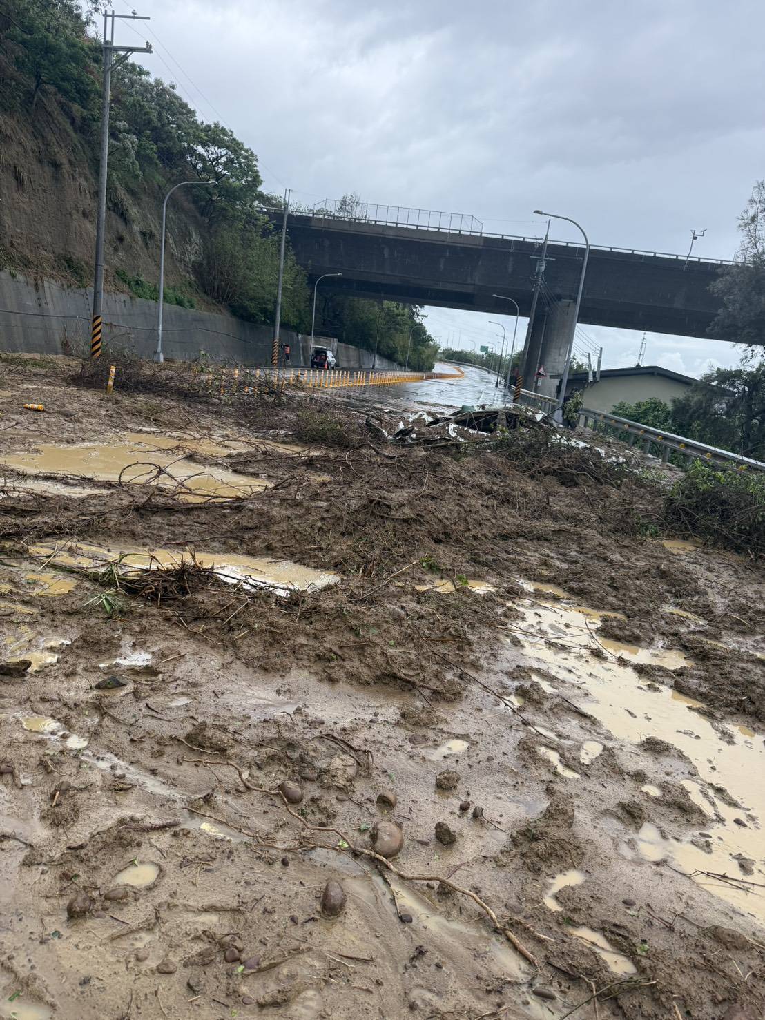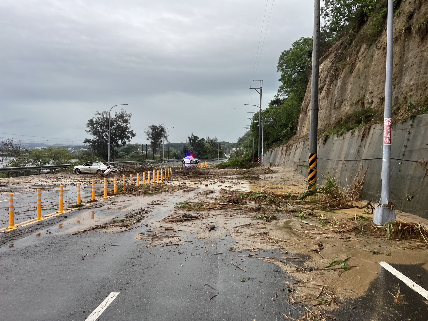 苗栗縣4日出現強降雨,竹南警分局造橋分駐所清晨6時許接獲民眾報案,苗9線往五福大橋路段發生土石崩落,員警到場發現,大量崩落土石已橫跨雙向車道,且一輛自小客車遭落石擊中,駕駛蕭姓男子已自行脫困,初步僅見手腳多處擦挫傷,經送醫檢查後發現頸椎骨裂,所幸無生命危險。