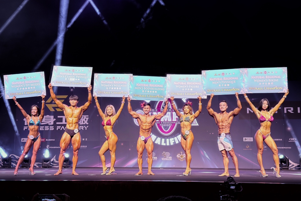 賽事重頭戲之一的自然區域賽於4月4日登場,各量級競爭激烈,最終誕生七位總冠軍,分別為男子傳統健美:Sarita(印尼)、男子古典健美吳瑞銘(台灣)、男子健體陳昱銘(台灣)、女子形體蔡易玲(台灣)、女子健康體態洪玟汶(台灣)、女子健身模特兒劉芳容(台灣)及女子比基尼詹益儒(台灣),展現選手在體態雕塑與舞台表現上的全面實力,也象徵台灣健美基層與自然組發展日趨成熟。其中女子健康體態項目,由洪玟汶奪下總冠軍,成為全場矚目焦點,2025年遭遇車禍,導致右膝髕骨斷裂,復健與備賽過程遠比常人艱辛,不僅承受身體上的劇痛,更面臨巨大的心理壓力。然而洪玟汶以驚人意志力重返舞台,詮釋「打斷腿骨顛倒勇」的精神,最終逆境奪冠。
