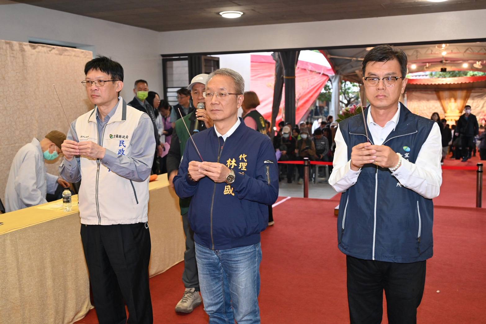 員山福園春祭法會,由代理縣長林茂盛(中)擔任主祭。(圖/宜蘭縣政府提供)