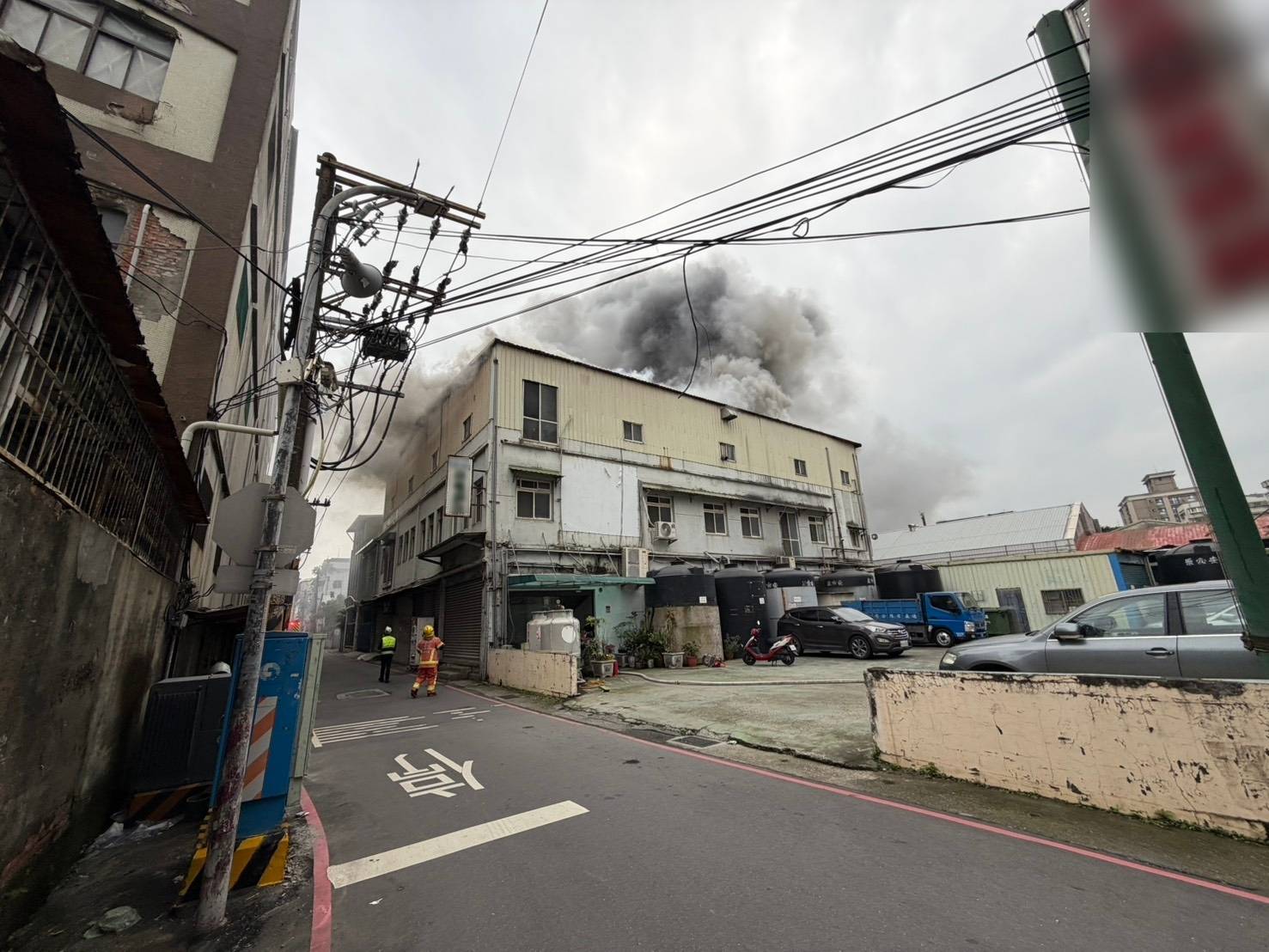 新莊民安路工廠火警冒出濃煙。翻攝畫面