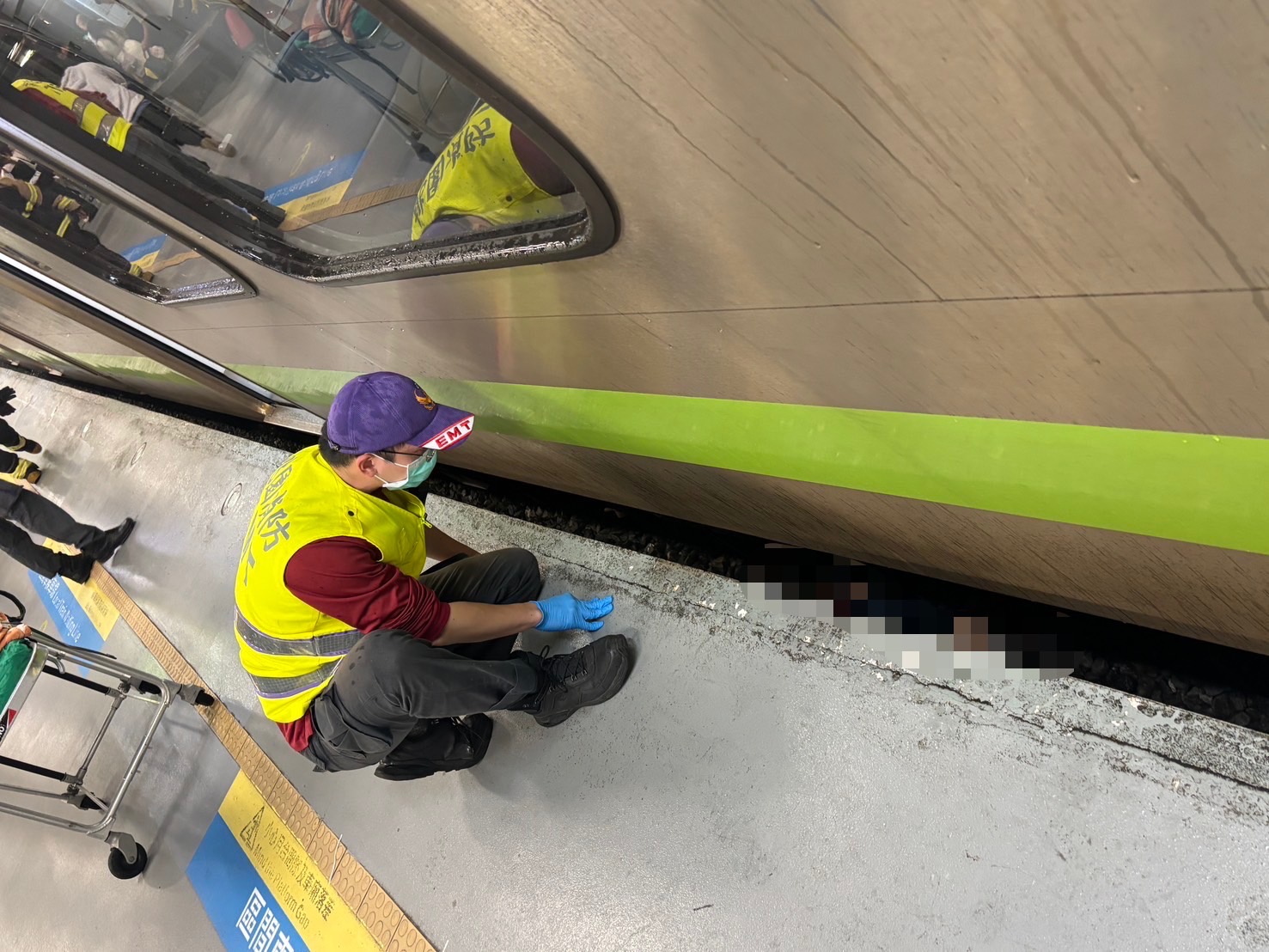 台鐵中壢車站男子從胎墜落遭區間車撞擊,員警前往調查。翻攝畫面