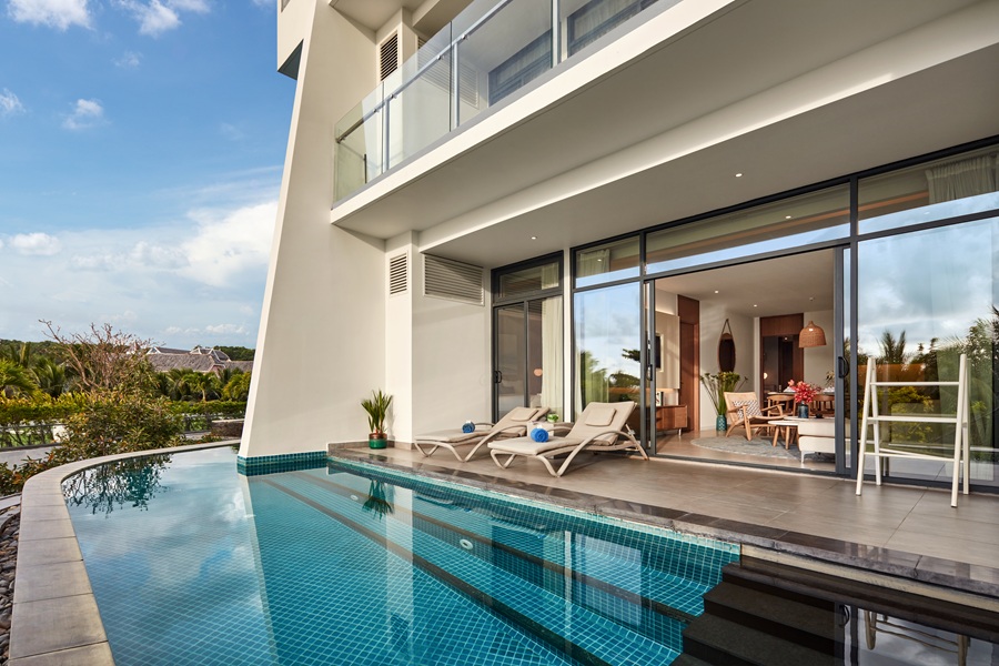 由國際知名雅高酒店集團(Accor)管理的Premier Residences Phu Quoc Emerald Bay,坐落於被譽為全球百大最美沙灘之一的Khem Beach第一排,擁有無可取代的壯麗海景。飯店以清新明亮的設計語彙,融合現代建築線條與自然採光,為靜謐的翡翠灣注入年輕且時尚的度假氛圍,也讓整體空間更顯通透舒適,成為南島海岸線上極具辨識度的地標。