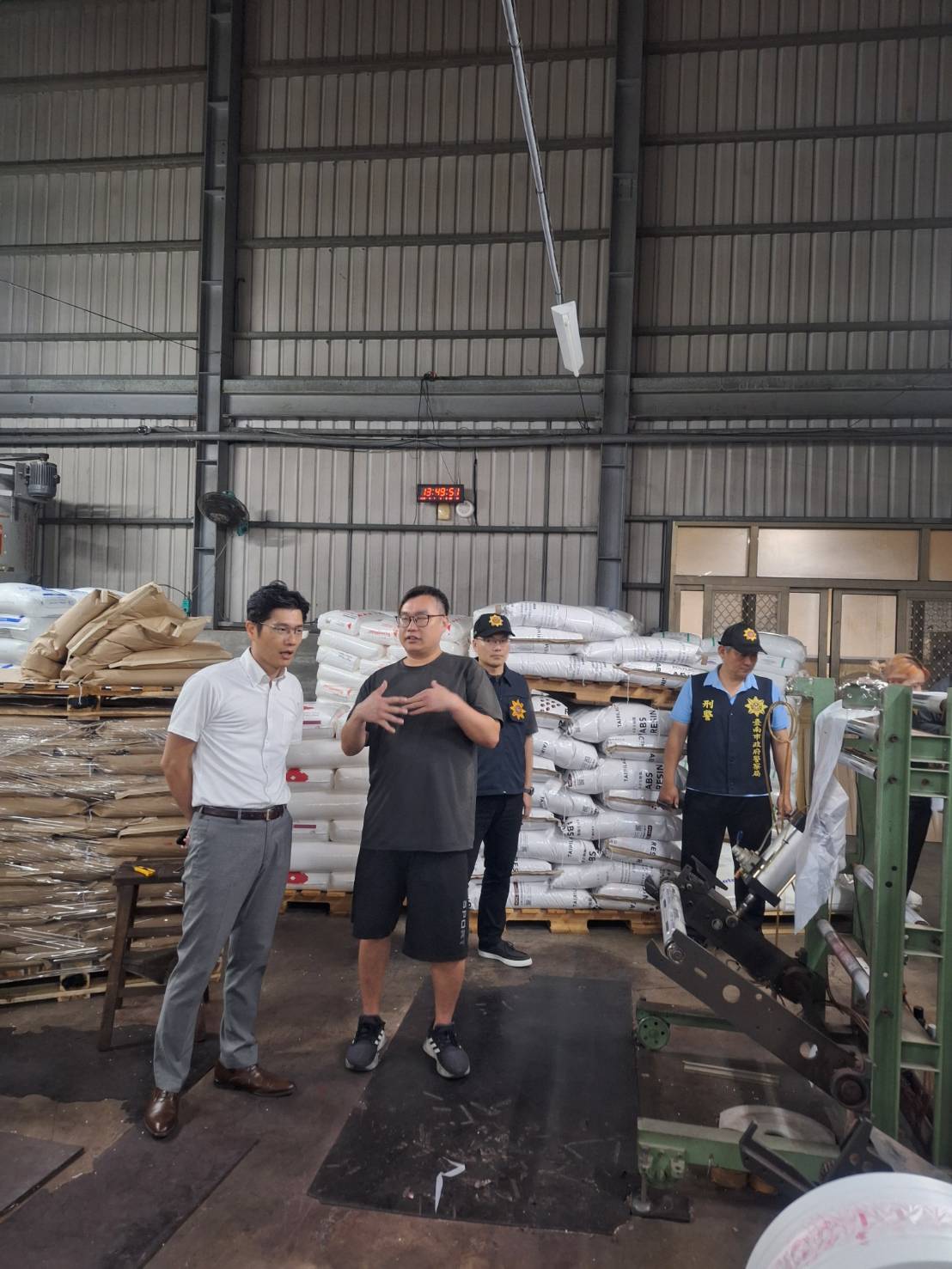 台南地檢署鍾和憲檢察長於連假甫結束,再行指示民生犯罪專組錢鴻明主任檢察官於今(7)日率同台南市政府警察局刑事警察大隊偵一隊及台南市政府經濟發展局,依據先前查訪零售業者所獲資訊,前往台南市新營工業區內2家塑膠袋製造業者進行查訪。