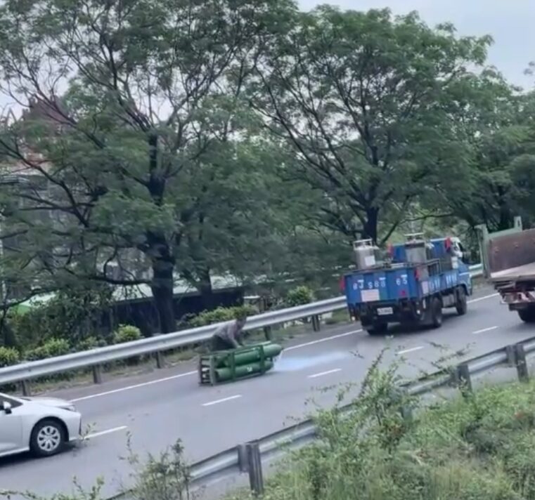 【Lai傳媒、記者爆料網/周庭慶/台南報導】民眾PO網一段影片,昨(7)日下午1輛載運鋼瓶的小貨車行經國道1號仁德交流道匝道,鋼瓶掉落路面且氣體不斷噴出,場面相當驚險!國道警察第四大隊表示,昨日接獲台南市警局110通報,立即調派巡邏車前往現場,惟抵達時掉落物已排除,已聯繫當事人到案說明,俟查證後依規定舉發。