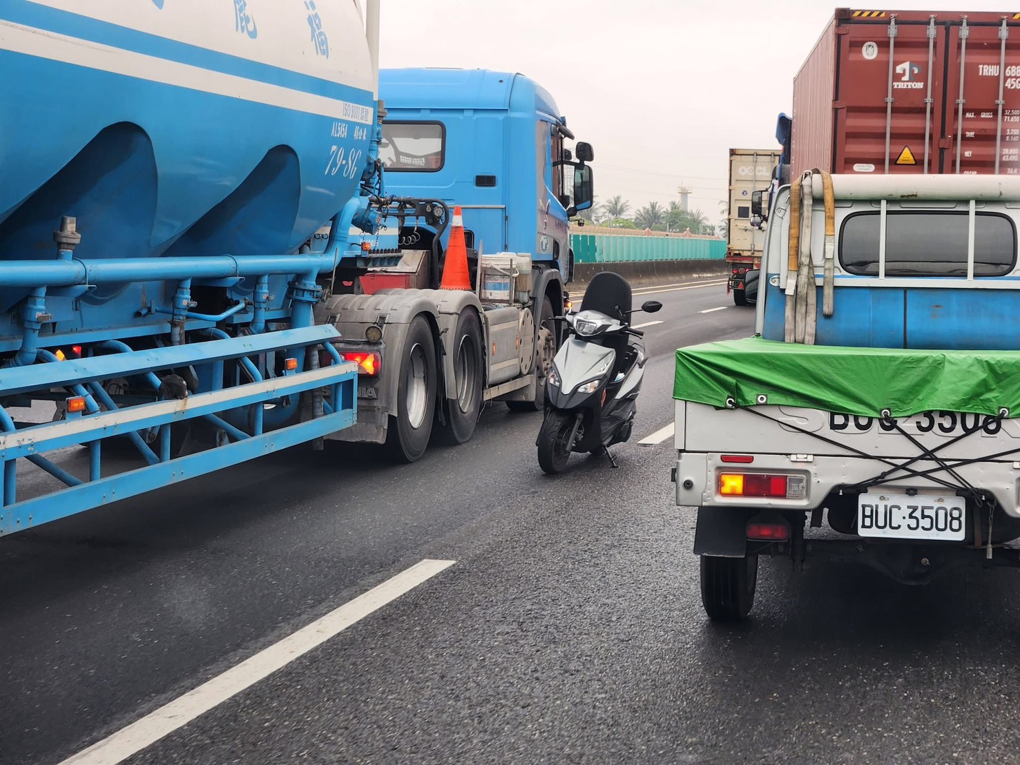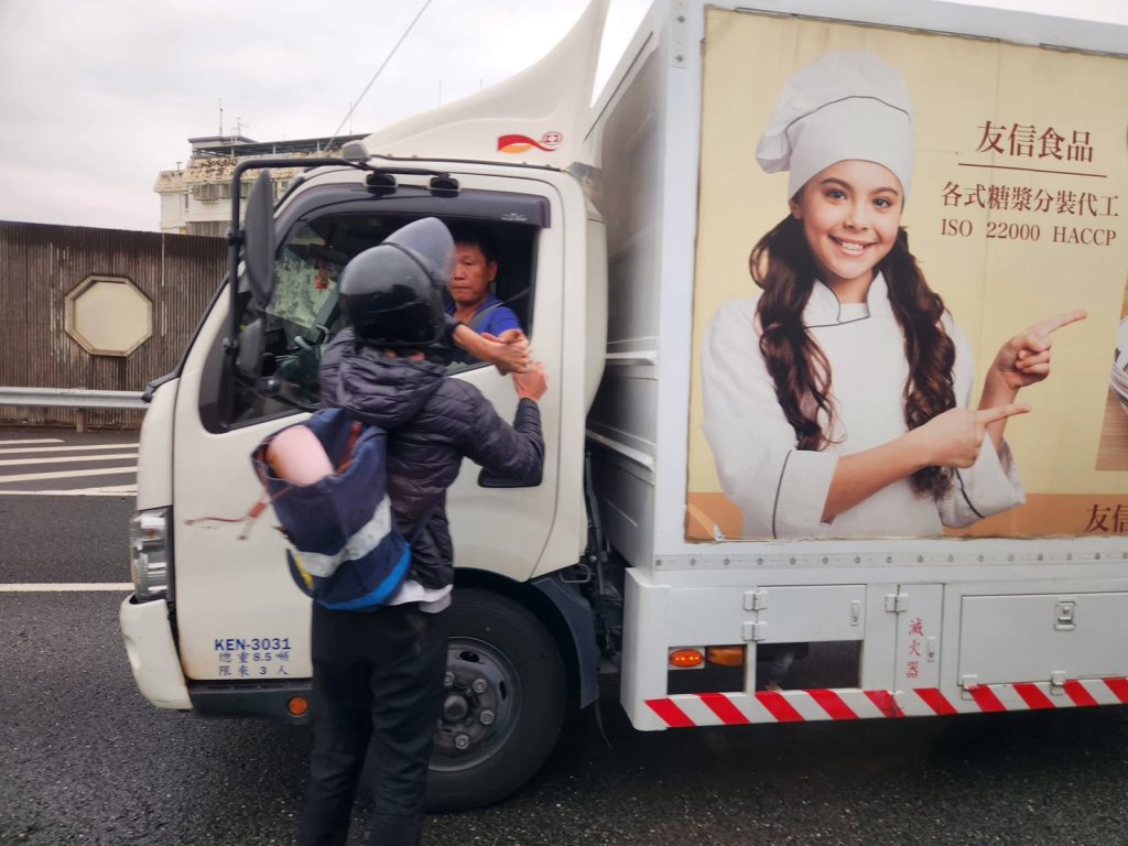 機車騎士逆向上國道,還把車停下跟小貨車司機吵架。