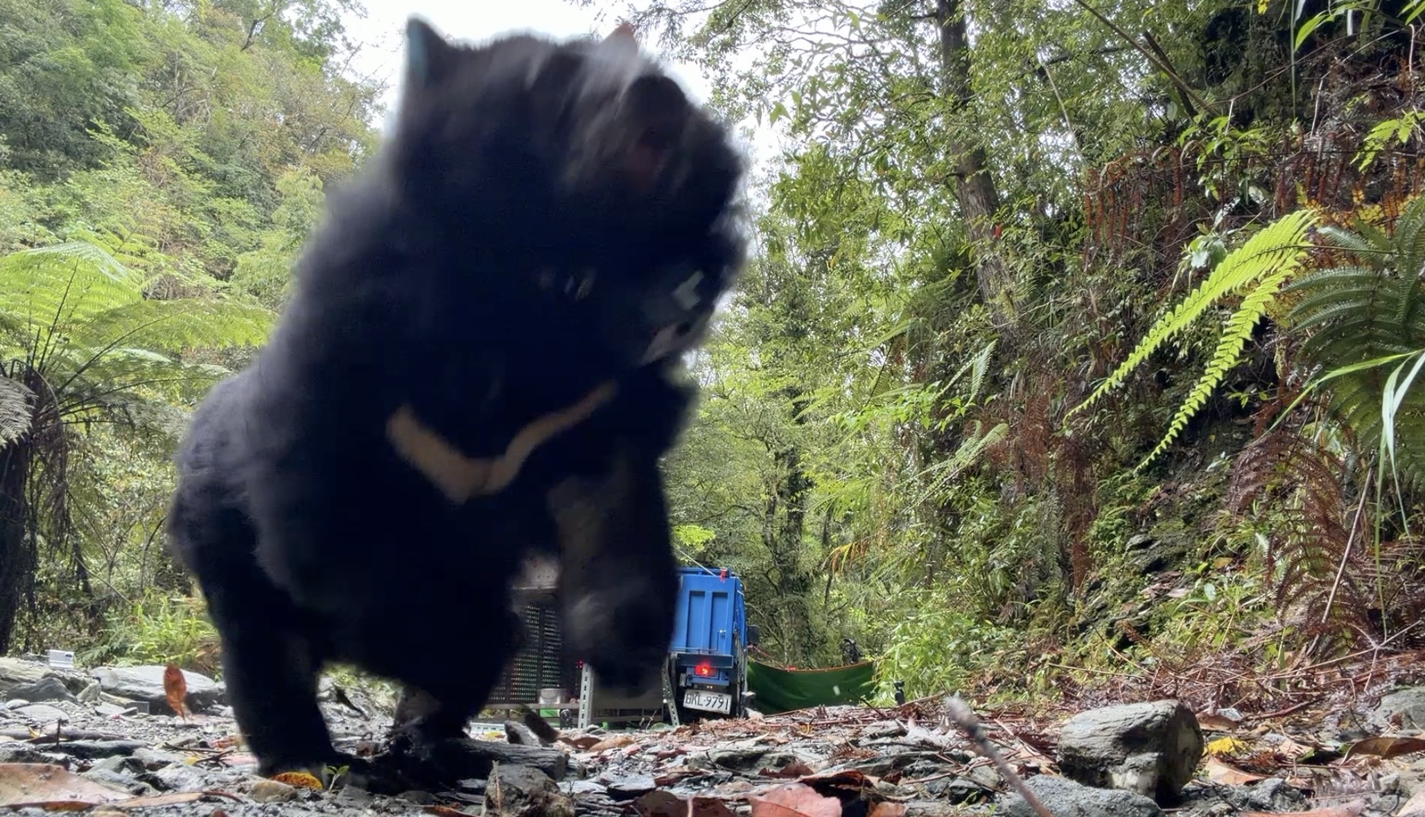 儀式完成後,團隊便在中平林道行車終點野放,採取人不下車、減少人熊接觸的方式進行。在野放小母熊後,約半小時後再野放成熊,母、女兩熊前後出籠後都快速奔向森林深處。