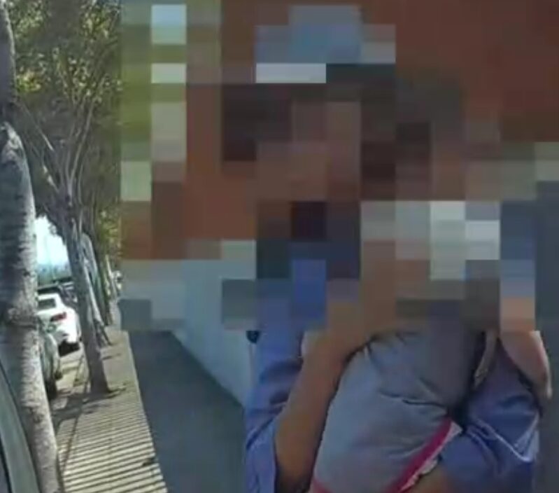 婦人抱出反鎖車內受困的女兒。翻攝畫面