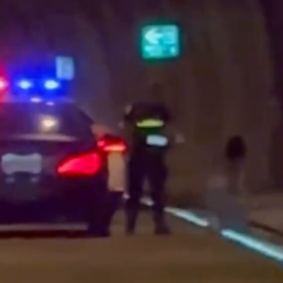 國道警察在國道6號隧道內攔查可疑車輛,盤查車內女乘客時,該女子疑受到驚嚇不知所措坐在路面上。翻攝畫面